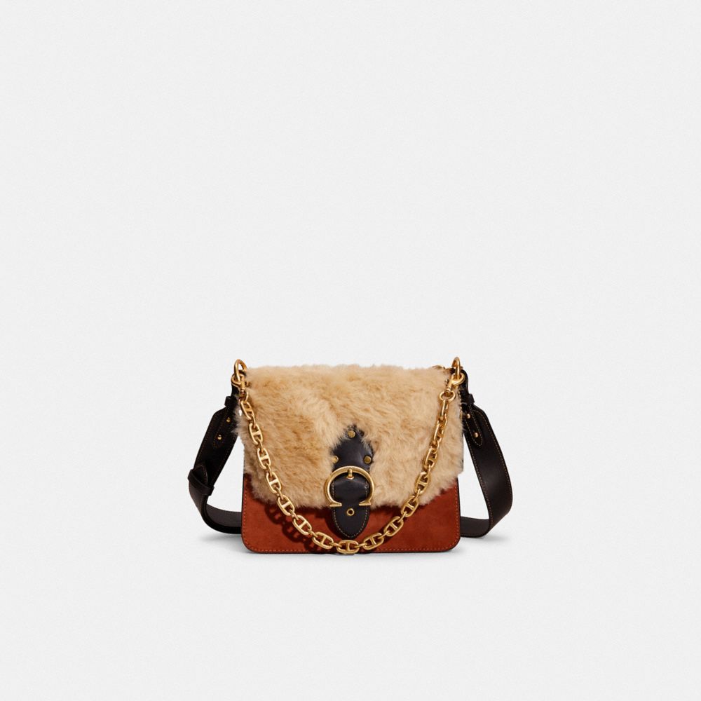 Inspired by the heartbeat of New York City, our Beat bag is crafted in a mix of plush shearling, velvety suede and buttery soft glovetanned leather. It features three compartments and a snap closure accented with our Coach buckle.