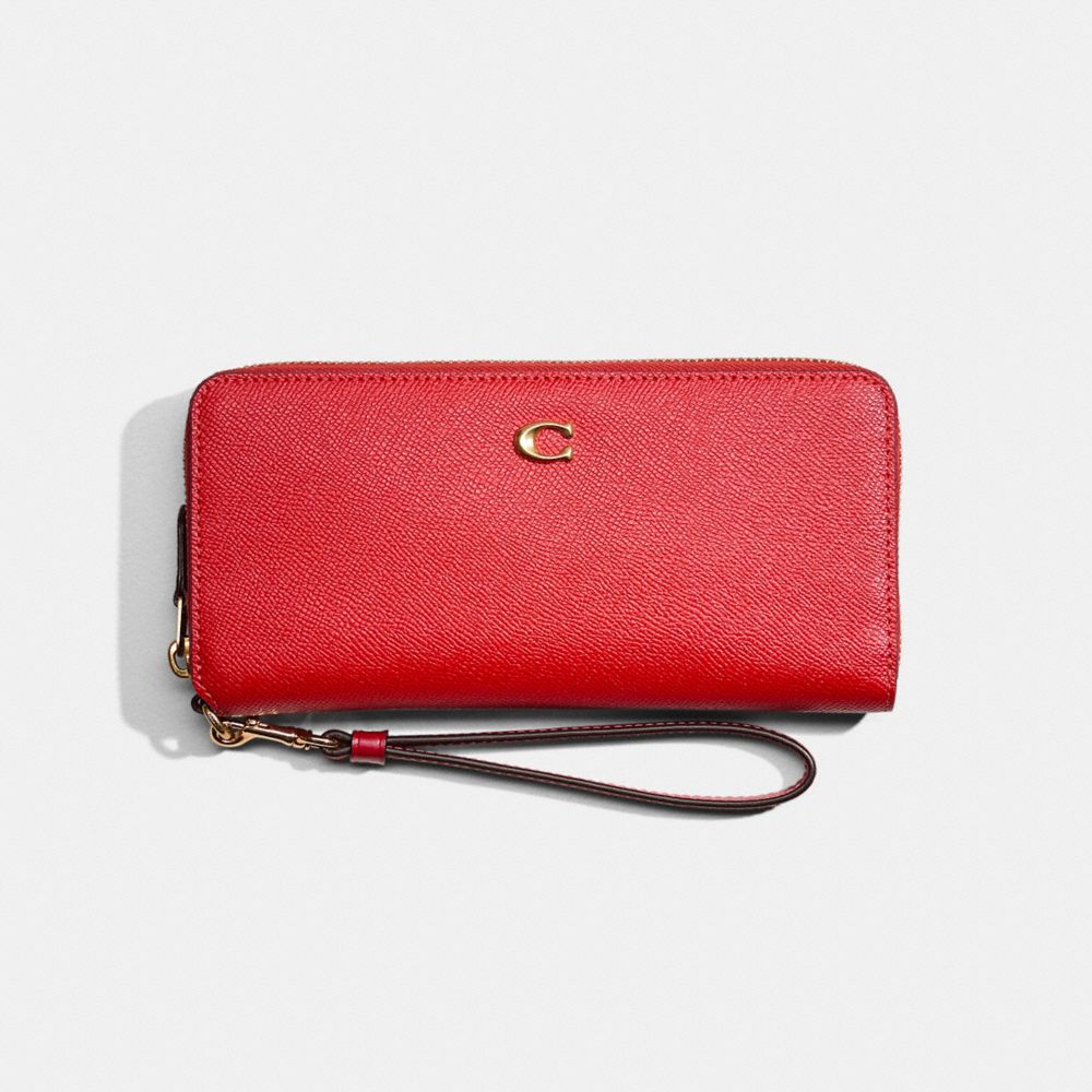 A timeless style made modern with a detachable wrist strap, this scratch-resistant crossgrain leather wallet has a continental zip-around closure and an elongated shape. The organized design has extra room for a phone and other small essentials.